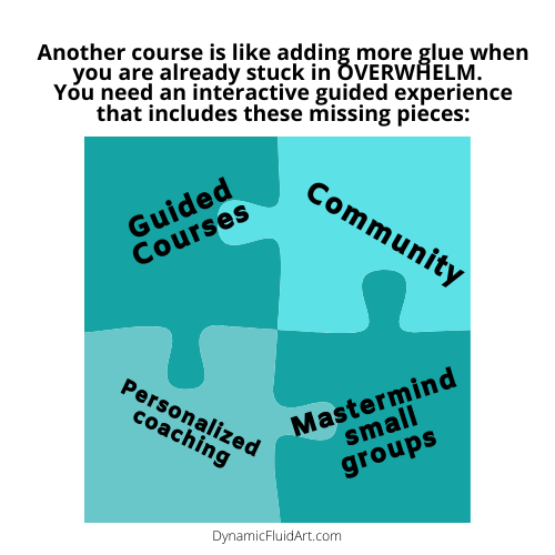 Dynamic Fluid Art Coaching has the packages of membership with the right mix for you! Conquer overwhelm with just the right amount of information -not too much, in a guided process.
